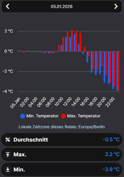 Wir messen seit Mai 2024 durchgehend und kommen am Gebäude "Maxi3" in Berlin-Pankow auf weit weniger Frosttage.