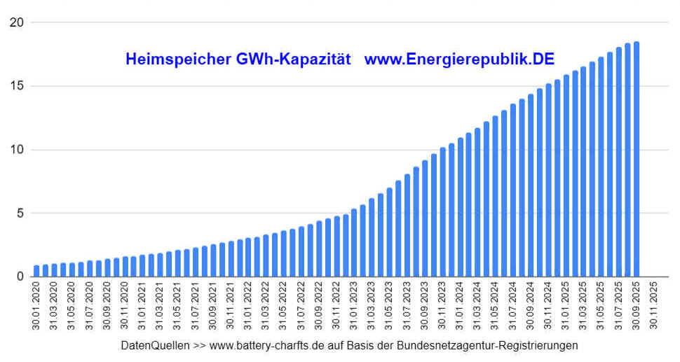 Stand Sept.2025 >> Heimspeicher 18,51 GWh   Industriespeicher  0,7 GWh   Großspeicher  3,04 GWh