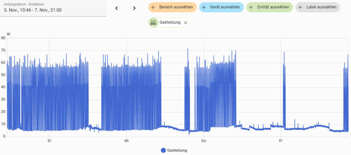 nicht an. Die Elektronik der eingeschalteten Gasheizung verbraucht allerdings