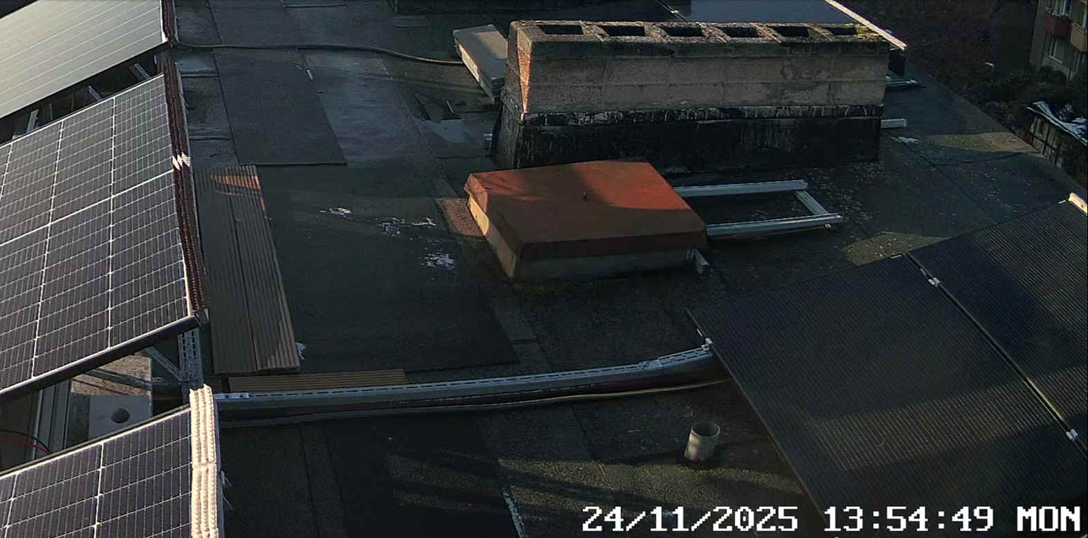 Sonne nur noch ganz knapp über dem Gegenüber-Dach, aber eine Etage tiefer (BüroWhg) ist sie schon seit Ende Oktober "weg".