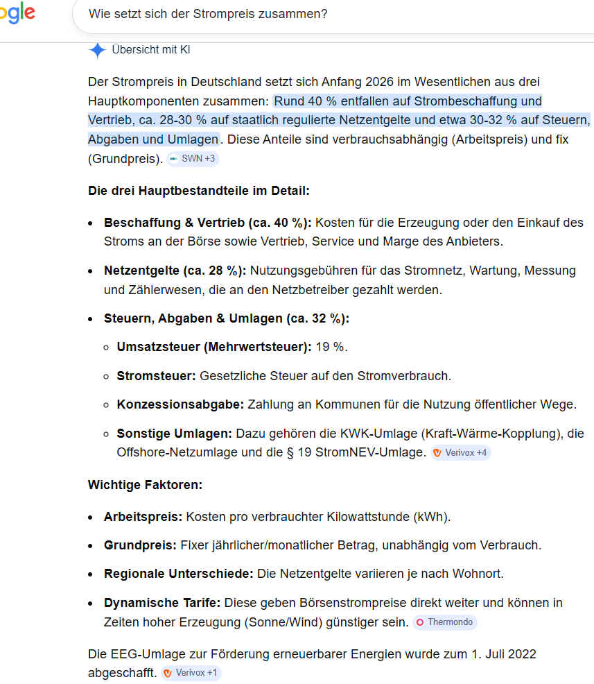 Recherche: Wie setzt sich der Strompreis zusammen?